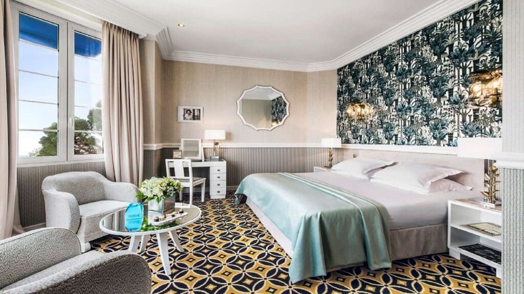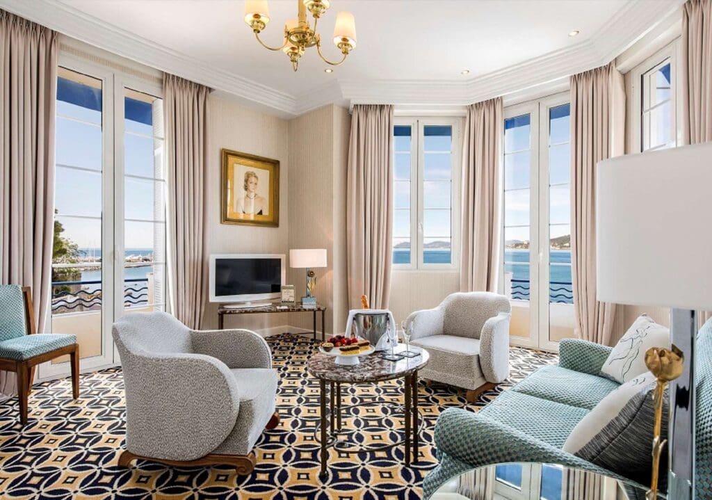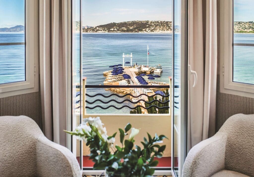 During the 1920s, F. Scott Fitzgerald made his home on Cap d’Antibes in a seaside villa now known as Hotel Belles Rives. Such Jazz Age lineage adds to the shimmer of this renovated art deco-era hotel meant for luxury travelers. All 43 rooms feature French step-out balconies (book one with a direct sea view). Relax on the private beach or over cocktails in the swanky Fitzgerald Bar with its grand piano and leopard-print chairs. Then pamper yourself in the brand-new Beauty Room by Valmont® before a dinner on the redesigned and Michelin-starred La Passagère’s panoramic terrace while watching the mega-yachts bob on the sea.