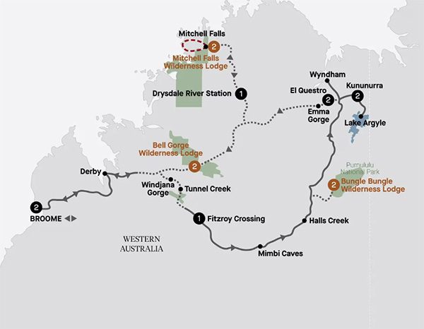 • 14 nights in APT’s exclusive network of luxury wilderness lodge including two nights at El Questro
