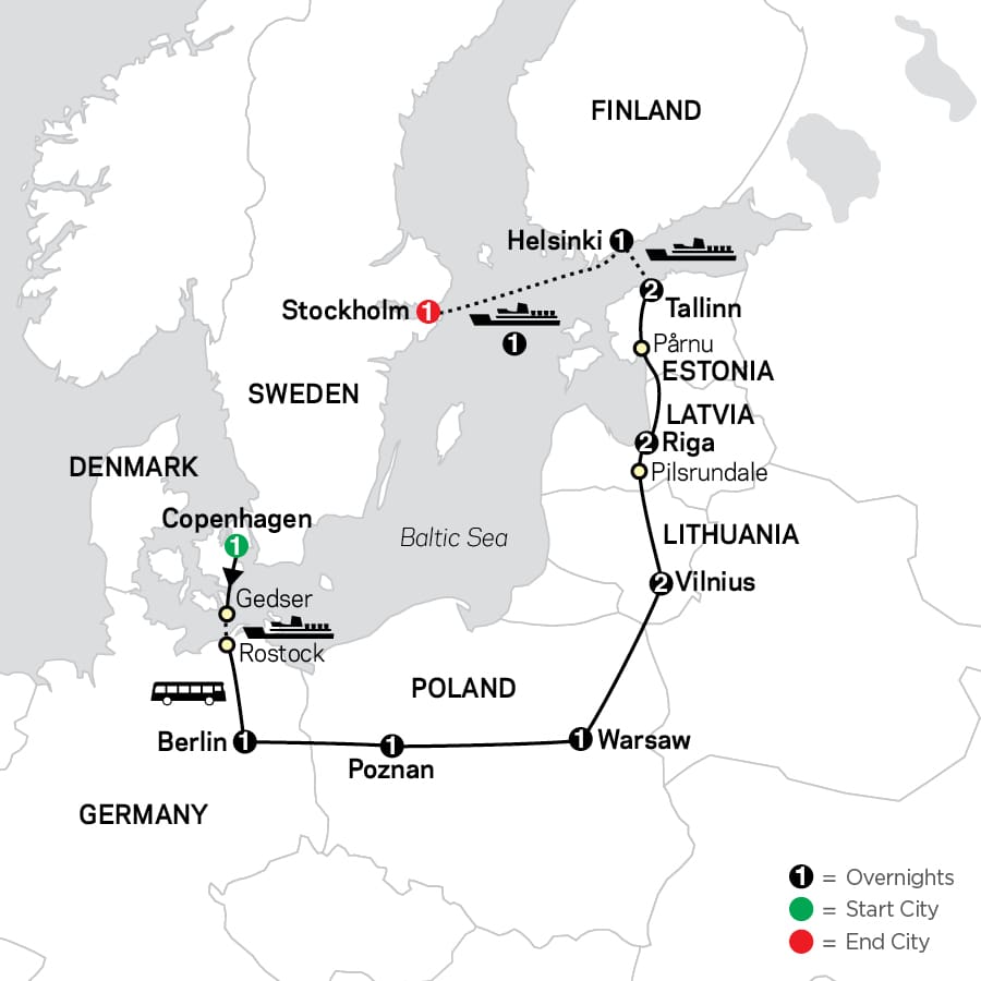 On this Baltic States and Scandinavia adventure, discover Denmark, Sweden, and travel through Germany, Poland, Finland, and the Baltic States of Lithuania, Latvia, and Estonia.