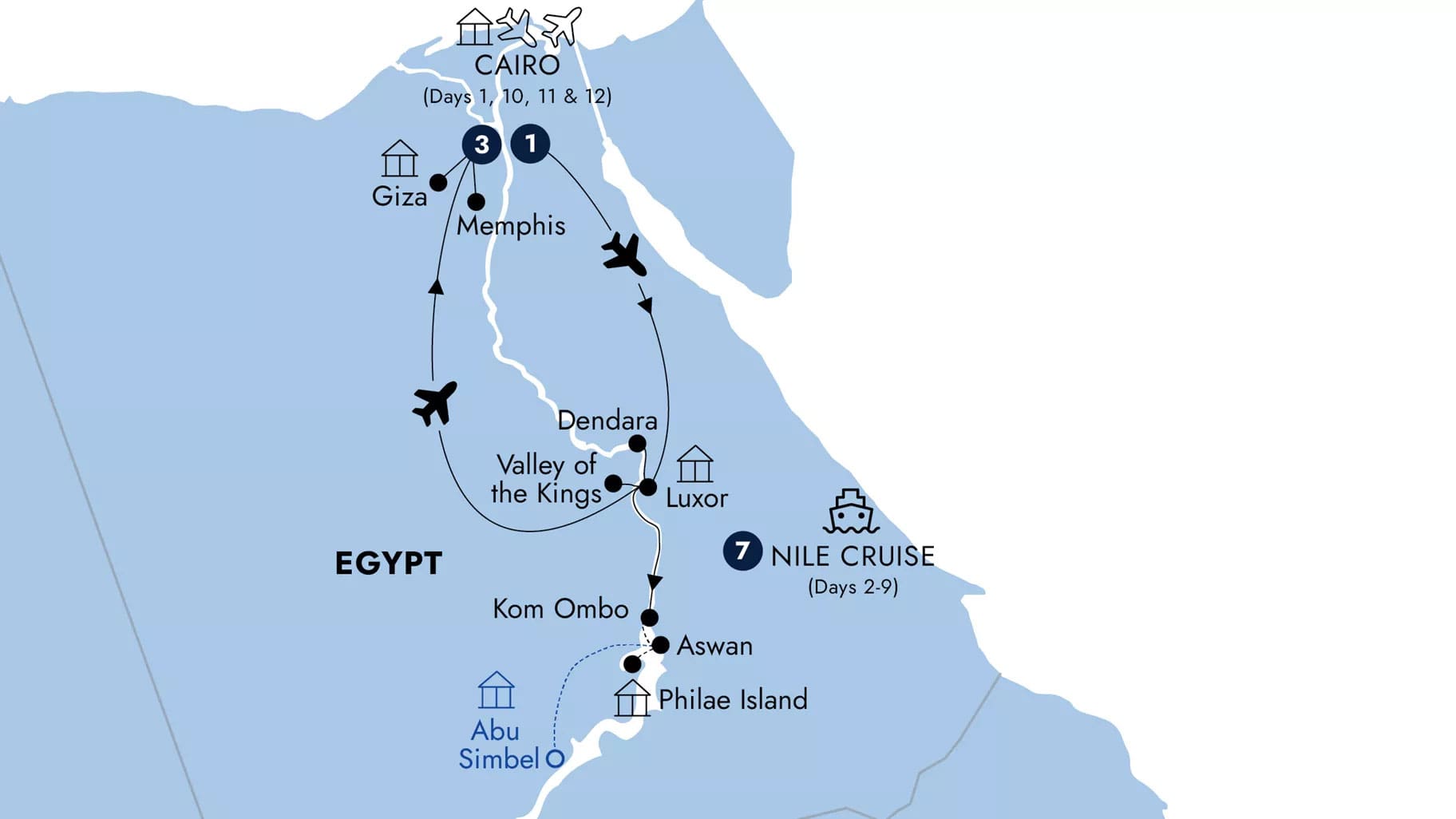 This morning, disembark from your cruise and travel to the west bank of the Nile. Delve into history seeing both the Temple of Hatshepsut and the Valley of the Kings where many pharaohs were buried, including Hatshepsut, Amenhotep I and Tutankhamun. Enhance your discovery with a visit to the Valley of the Queens. This site houses over 75 tombs belonging to queens of the 19th and 20th dynasties, as well as other members of the royal families, including the tomb of Nefertari and the Ramesside princes. Later, transfer to the airport for your return flight to Cairo.