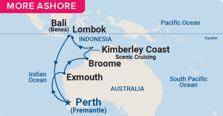 *Pricing is correct as of 12.11.2025. Pricing is in AUD, per person, twin share. Pricing is based on Princess Plus™ fare. Northern Explorer price based on 10/10/27. Western Australia Seacation price based on 15/12/27. Coral Coast price based on 2/1/28. Indonesia price based on 29/1/28. Treasures of Asia (Fremantle to Singapore) price based on 12/2/28. Treasures of Asia (Singapore to Fremantle) price based on 28/9/27. #Operates in reverse. Itinerary and ports vary. ^Itinerary and ports vary. Itineraries are subject to change, and operation is subject to weather conditions, prevailing conditions, and local arrangements that may cause variation. Cabins may be on a guaranteed basis and may have obstructed views; Princess Cruises will assign a cabin number closer to your sailing date. Travel insurance is recommended; please ask us for a quote. Payment by credit card attracts a merchant fee. We act as an agent on behalf of the travel supplier/provider. Our Terms & Conditions are in addition to the Terms and Conditions of each Travel Supplier listed; the Travel supplier/provider determines the terms of cancellation and refunds, if any. Full terms and conditions are provided at the time of booking. Click here to view our full Terms & Conditions
