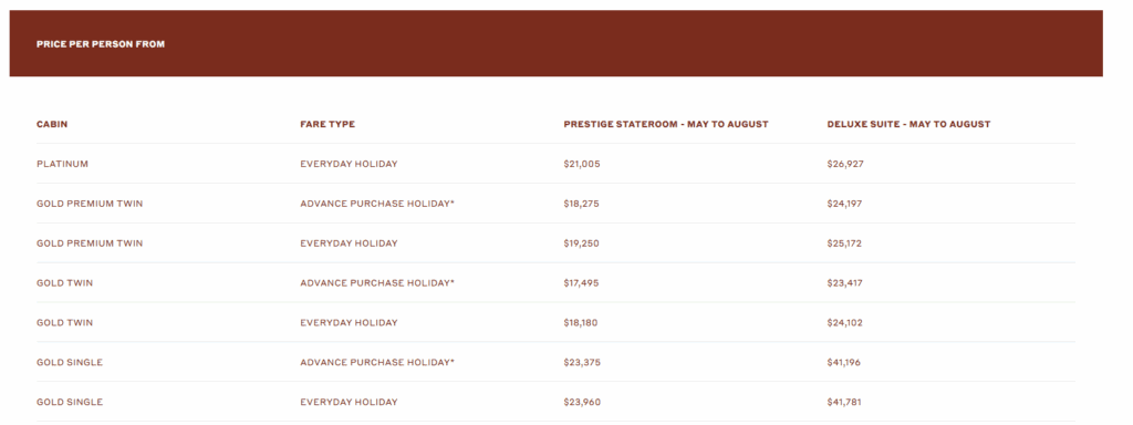 Pricing is correct as of 25/11/2025. Offer is subject to change or availability at the time of booking and may be withdrawn without notice. *Advance Purchase Holiday fares are subject to availability. Within 6 months of travel Saver Holiday fares may be offered, subject to availability. All discounts mentioned are included in the price displayed. Itineraries are subject to change, and operation is subject to weather conditions, prevailing conditions, and local arrangements that may cause variation. Travel insurance is recommended; please ask us for a quote. Payment by credit card attracts a merchant fee. We act as an agent on behalf of the travel supplier/provider. Our Terms & Conditions are in addition to the Terms and Conditions of each Travel Supplier listed; the Travel supplier/provider determines the terms of cancellation and refunds, if any. Full terms and conditions are provided at the time of booking.